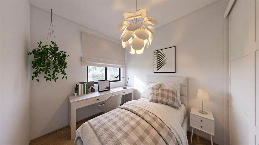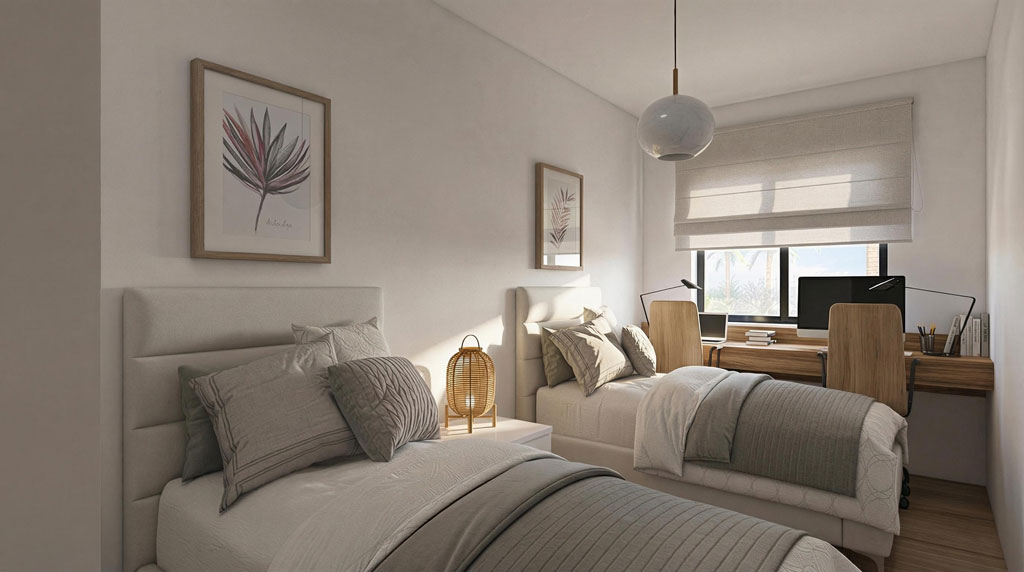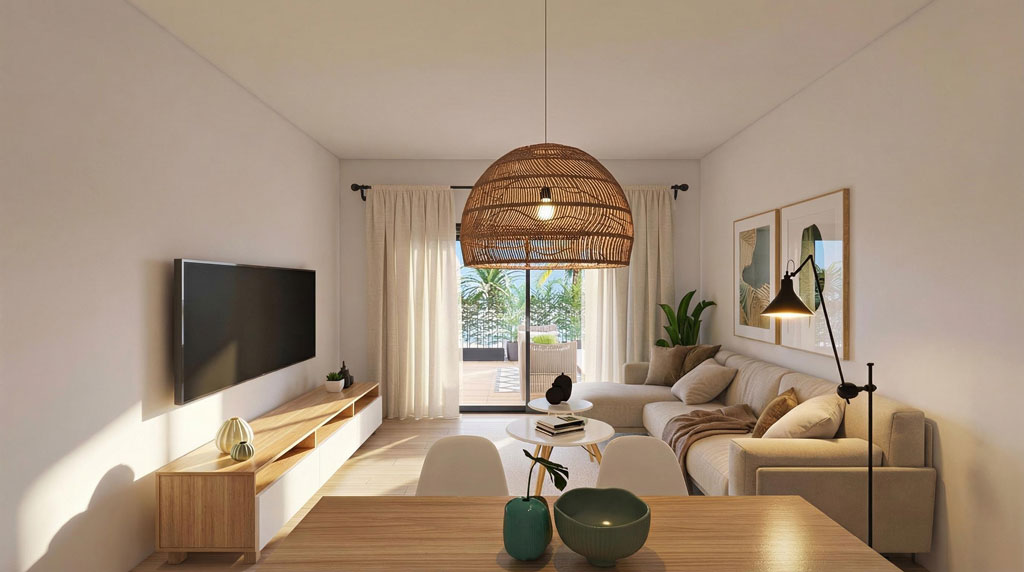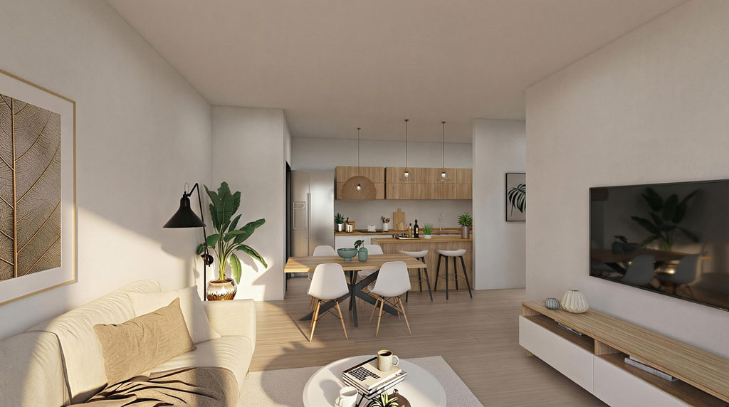Gracias al los Renders 3D Arquitectura y Home Staging Virtual, los muebles, la decoración y los detalles cuidadosamente seleccionados conseguimos ayudar a los compradores a visualizar cómo se vería el espacio amueblado y habitado.